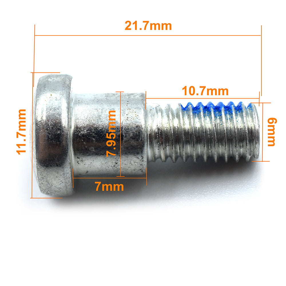 - Motor bolt's size is M12, rear wheel bolt's cap diameter is 11.7mm, total length (including cap) is 21.7mm, total thread length is 10.6mm